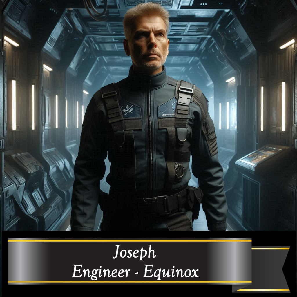 ABOUT: He is an engineer who has been in space for as long as he can remember. He is a family-oriented person. He works and lives with his family on the same ship. Having them on the same ship gives him strength and joy.